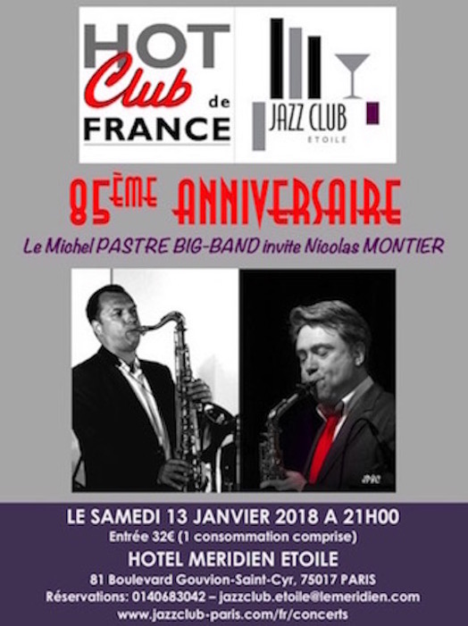 85e ANNIVERSAIRE DU HOT CLUB DE FRANCE - MICHEL PASTRE BIG BANDJ'ai le grand plaisir de vous annoncer que le concert des 85 ans du Hot Club de France aura lieu - avec un léger décalage rythmique - au
