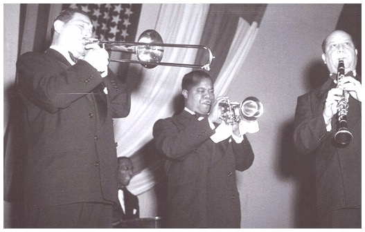 Photo de Couverture 1 : Teagarden, Armstrong, Bigard à Helsinki (1949).